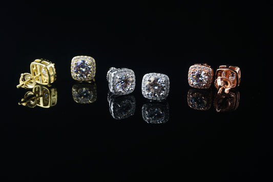 Square Moissanite Halo Stud Round Cut Earrings - 9mm