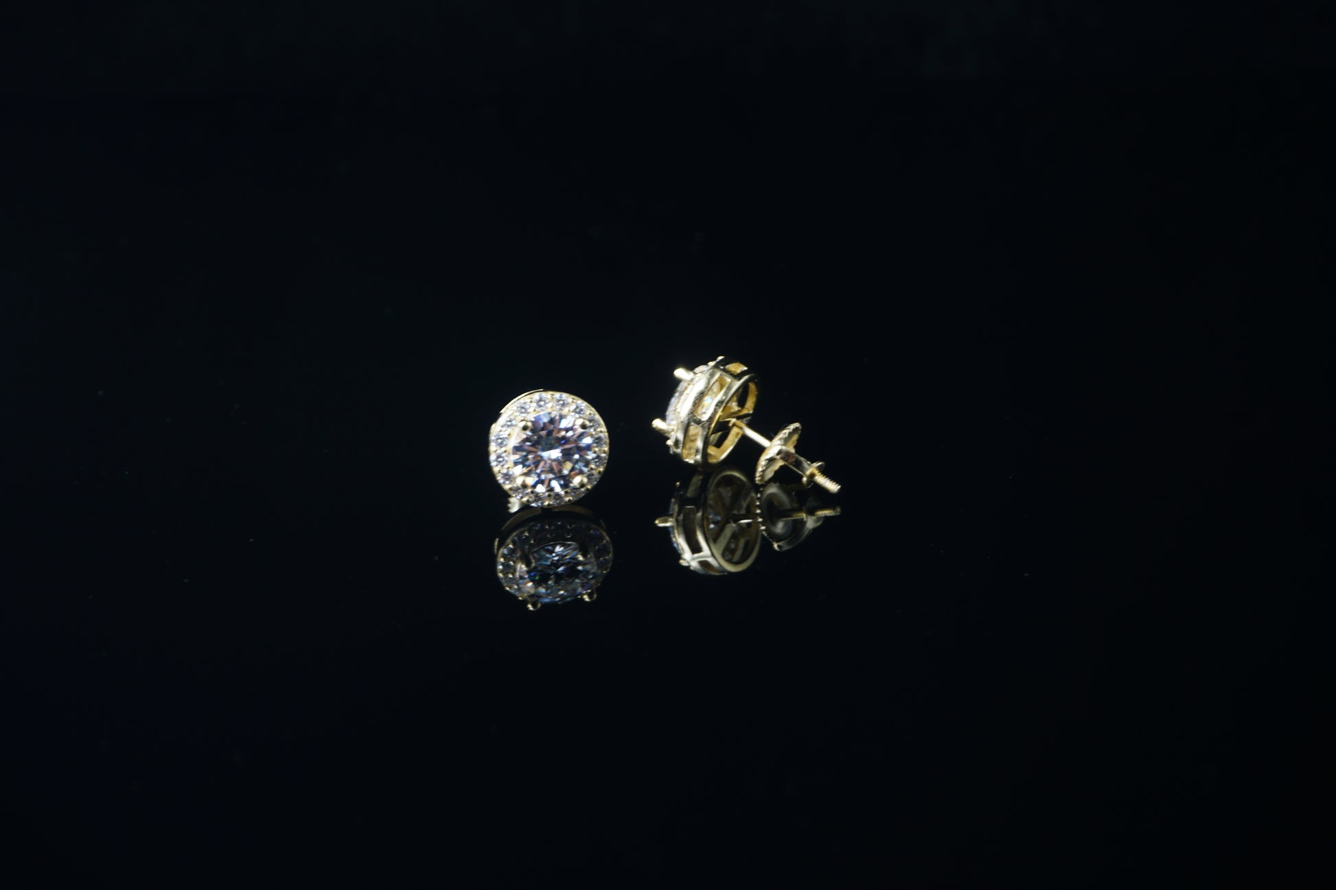 These round halo stud earrings feature a brilliant round 6.5mm Moissanite solitaire surrounded by a circle of sparkling Moissanite accents. The classic halo design amplifies the fire and brilliance of the center stone, giving timeless shine that works for both everyday wear and special occasions.